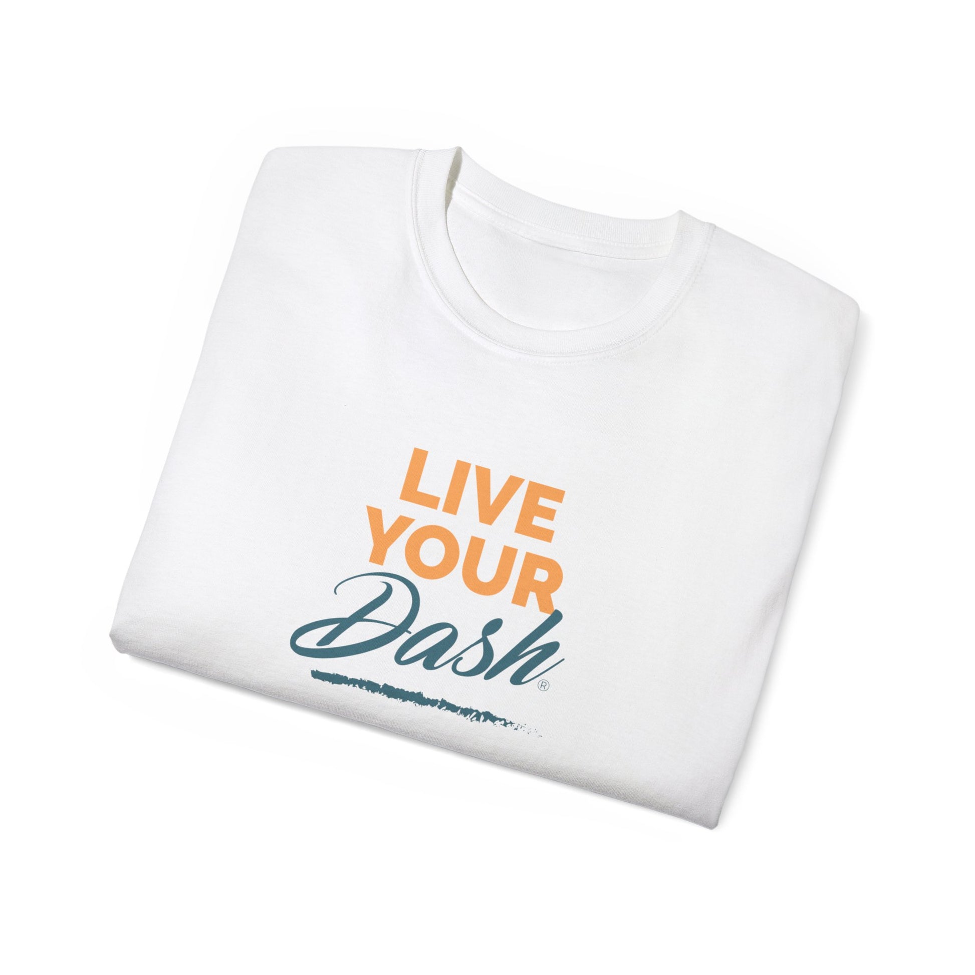 Introducing a stylish Unisex Ultra Cotton Tee designed to inspire positivity and individuality with its vibrant 'Live Your Dash' print. This tee brings a relaxed vibe, perfect for casual outings or lounging at home. The classic fit and soft fabric ensure comfort throughout your day, making it an ideal choice for a laid-back weekend or a fun night out. Its versatile design suits anyone looking to express their personal mantra or celebrate life's journey.